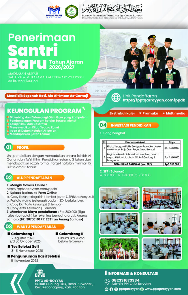 admin October 16, 2025October 16, 2025 Uncategorized Berikut Ini Brosur Pendaftaran Santri Baru Madrasah Aliyah Tahun Ajaran 2026/2027 DOWNLOAD BROSUR